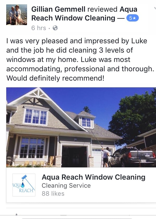 We are a cost effective, cleaner and more efficient window washing business servicing Oakville through to Niagara. At Aqua Reach Window Cleaning, we maintain a high level of professionalism in the services we provide as well as our personal appearance. We have standard operating procedures in place and only employ honest, hardworking window washers. Lastly, in accordance with Ontario law, we are fully insured and WSIB compliant for your peace of mind.